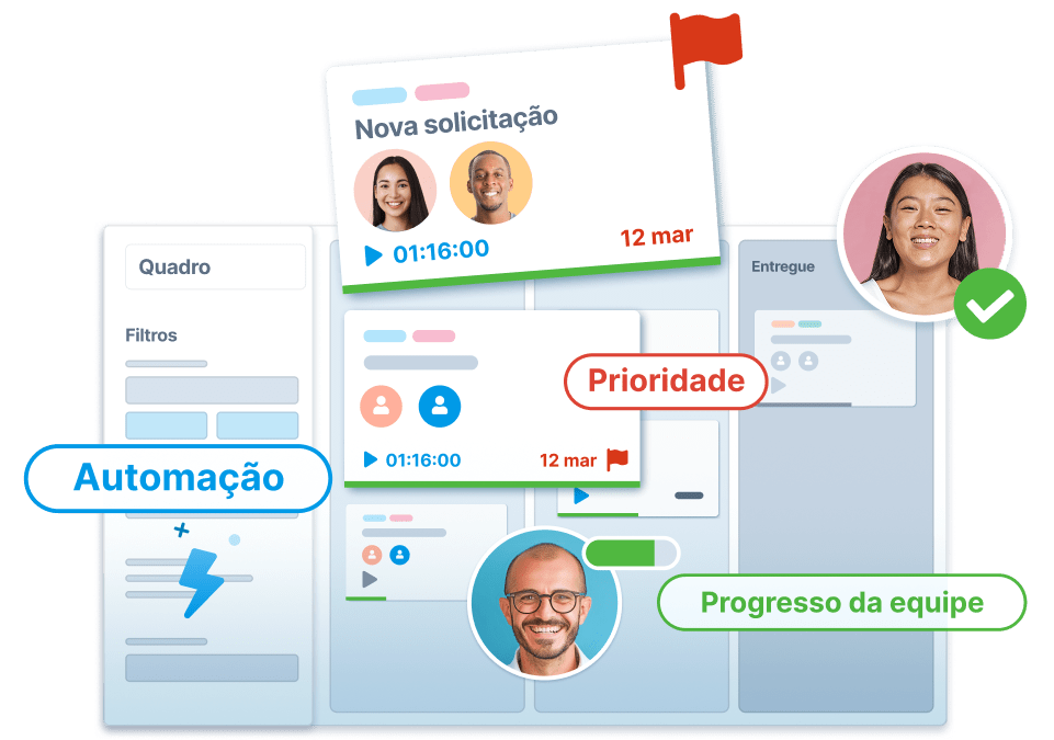 - Smart Time Tracking®: Monitore o tempo dedicado a cada atividade, entendendo a produtividade da equipe e otimizando a alocação de recursos.