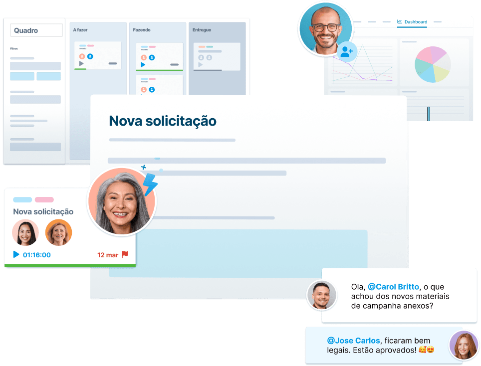 Formulários inteligentes: Para padronizar a entrada de demandas (briefings) e evitar retrabalho.